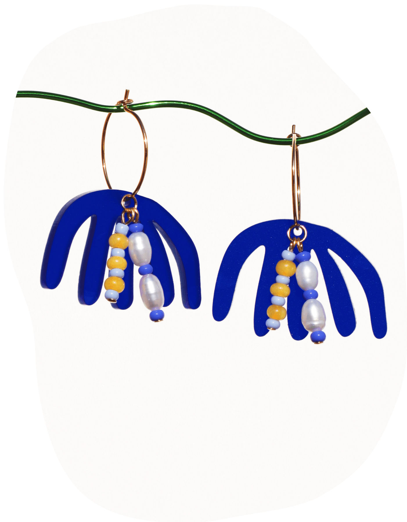 From the Shape Studies collection, the Drift Hoops pair a cut-out form with an intentional composition of glass beads and pearls. Each design in the collection explores a unique silhouette and color combination to create wearable art that is customizable and expressive. The beads can be removed from the hoops to wear the shapes alone.